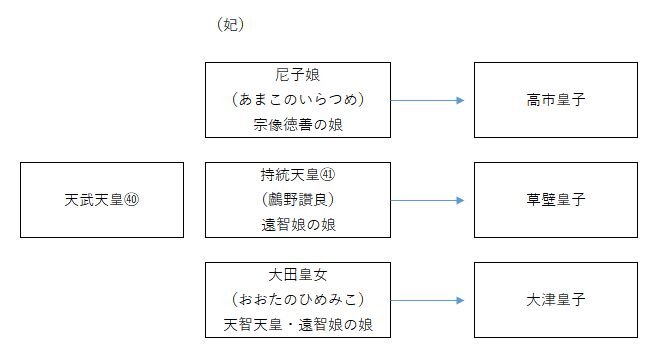 序列としては、「草壁皇子」「大友皇子」「高市皇子」となるが、天武の崩御以降は密かに後継争いが勃発。